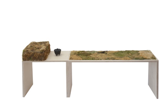 Moosbank, Tisch mit Moosschachtel + Räuchergefäss